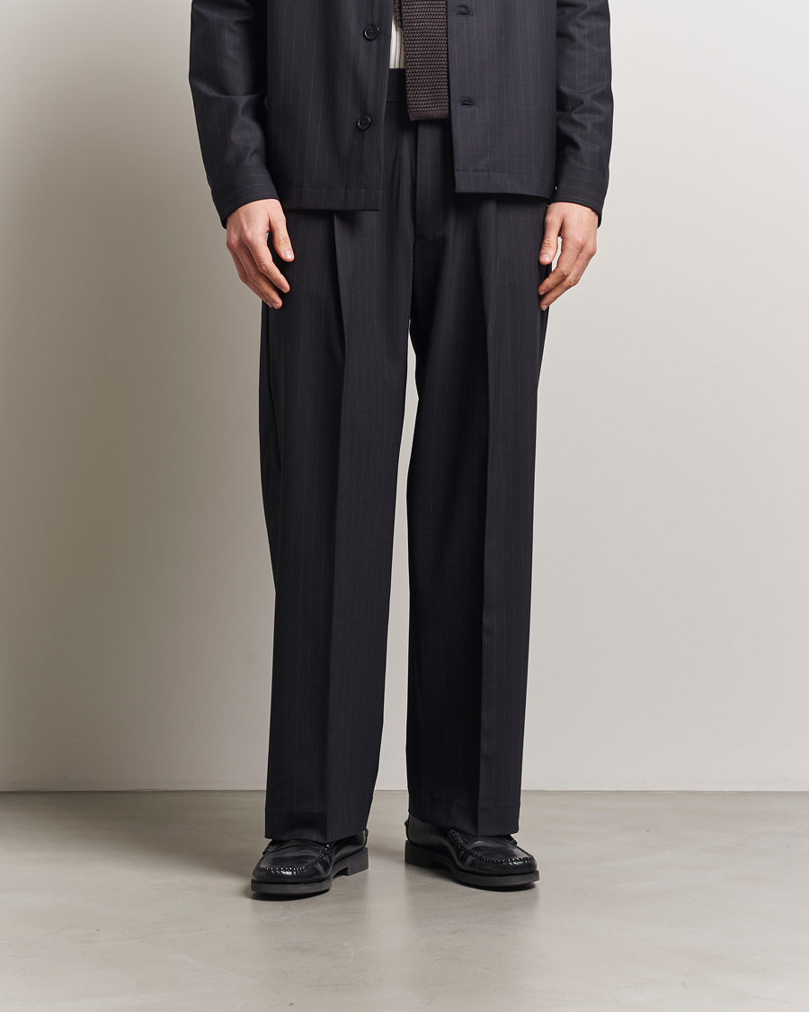 Heren | Broeken | NN07 | Kay Wool Pinstriped Drawstring Trousers Navy